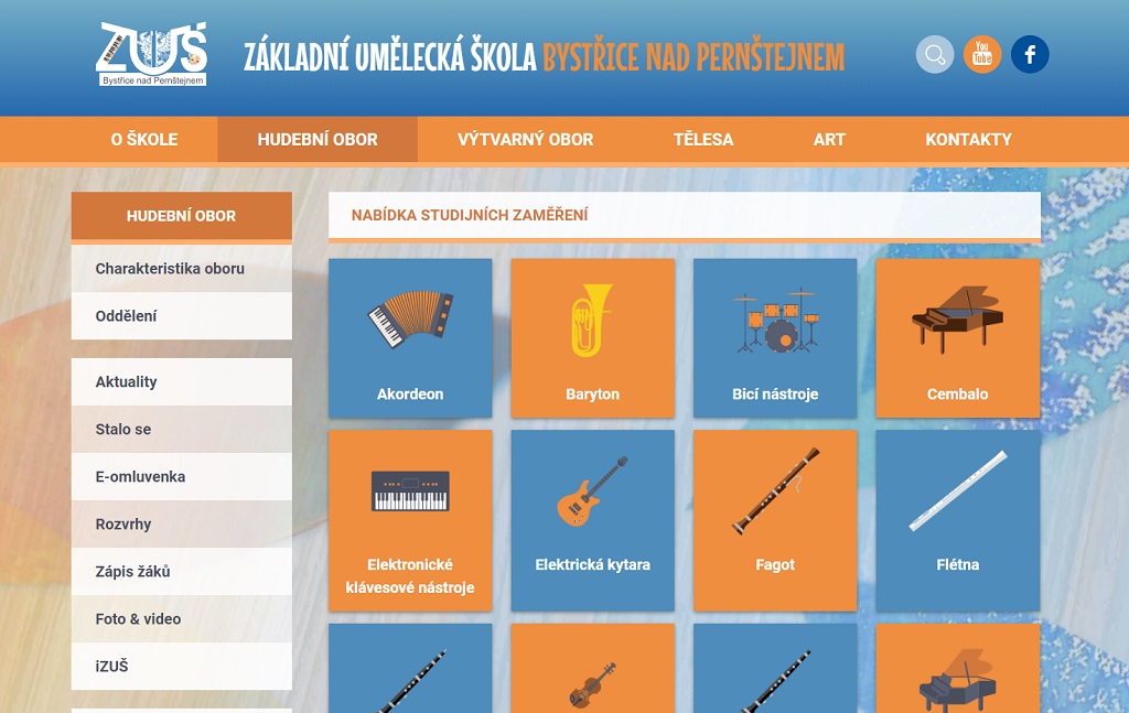 Po úvodních nedorozuměních při grafických návrzích se nám společně se Základní uměleckou školou v Bystřici nad Perštejnem povedlo vytvořit webové stránky oceněné zlatým erbem Kraje Vysočina. Byli jsme rádi součástí. Vyzkoušejte si na webu ZUŠ hudební obory (nezapomeňte si zapnout zvuk), jestli je všechny poznáte :-).